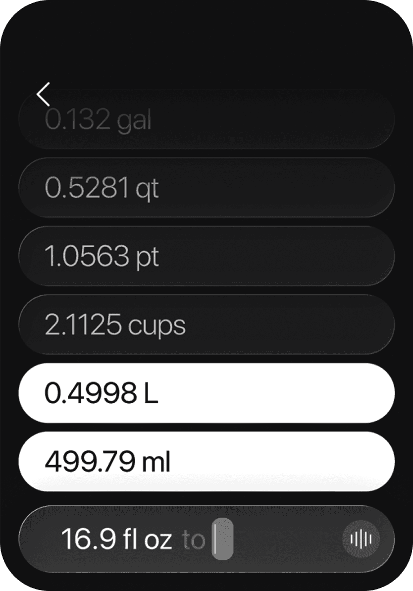 Enter a value and select a unit to surface the most relevant conversion options—then repeat for the desired output. Simple, fast, and intuitive.
